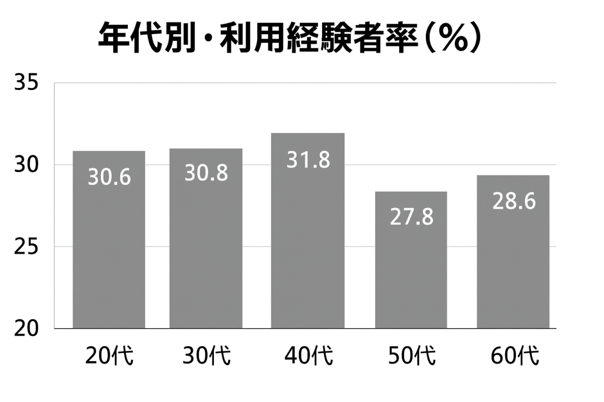 年代別では30代以上がやや減少する一方、20代の利用率は増加しており、若年層の来店が新たな成長の原動力となっている。