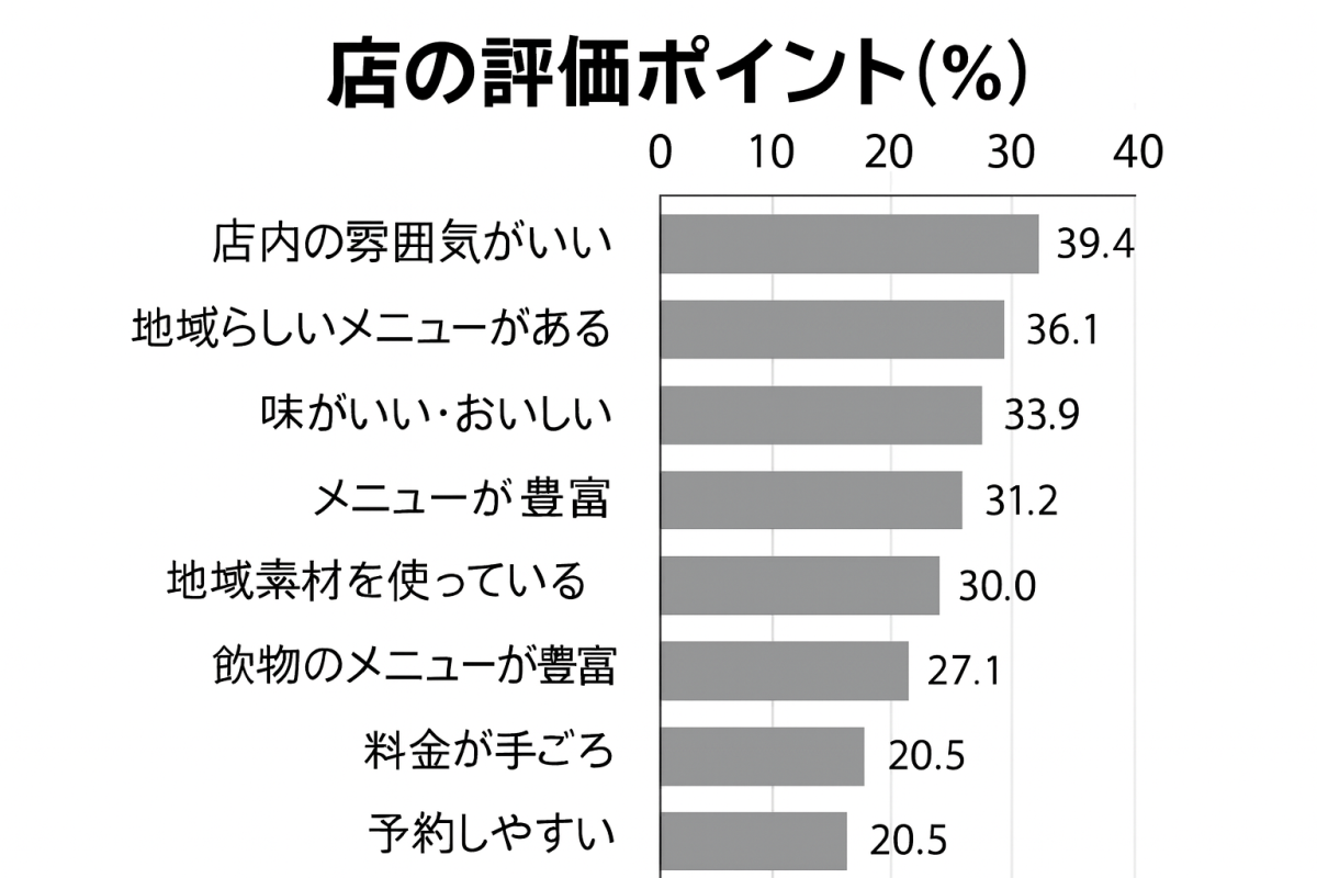 飲食施設利用率は19.1% 「店の雰囲気」や「地域素材メニュー」が高評価